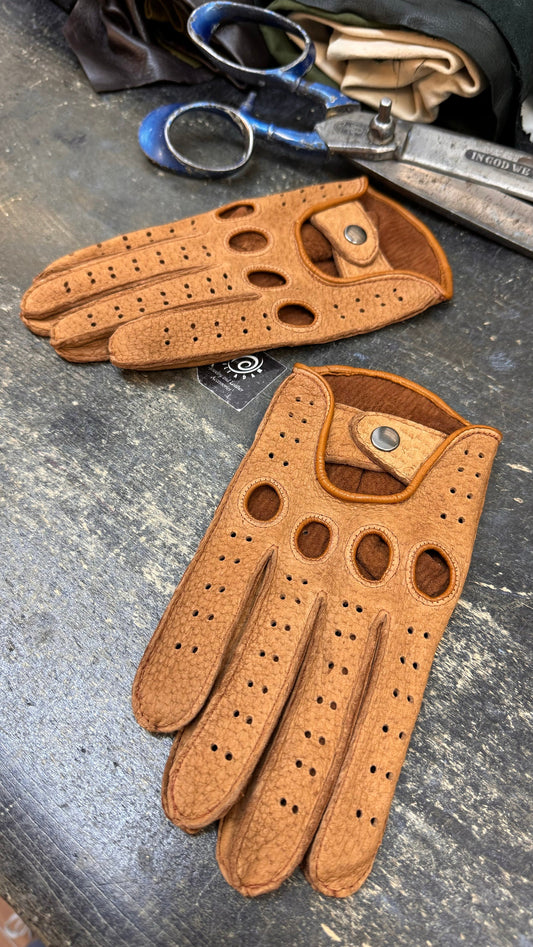 Men's Handmade Driving Italian Napa Leather Brown Gloves
